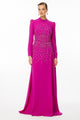فستان سهرة نحيف من قماش الكريب المطرز بالحجر
