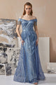 تنورة كتف مكشكشة مطرز فستان سهرة مفصل