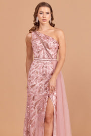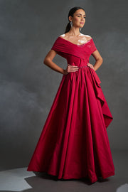 فستان سهرة بتفاصيل تجمع الخصر وتنورة ذات طبقات