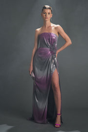 فستان سهرة بتفاصيل الخصر بلون مزدوج