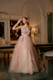 فستان سهرة أنيق وحنين بدون حمالات مع تنورة توتو