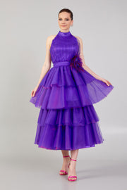 فستان ميدي بتنورة توتو وحزام كتف من التول