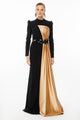 فستان سهرة حجابي من قماش الساتان على قماش الكريب متعدد الطبقات مع تطريز على الخصر