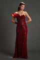 فستان سهرة مطرز بتفاصيل كشكش على الياقة