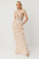 Ice Feather Couture Derin Dekolteli Taş İşlemeli Uzun Gece Elbisesi