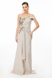 Zikzak Omuz Detaylı Çift Kumaşlı Abiye