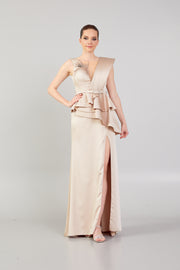 Omuz Detaylı Kat Etekli ve Yırtmaçlı Abiye
