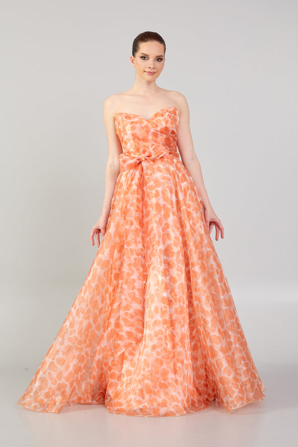 Elbisenin desenli baskılı tül kumaşı, zarif bir hava katarken, özel tasarımı ile kendinizi özel hissetmenizi sağlar. Her adımda dikkat çeken bu elbise, özel anlarınızda sizinle olacak.