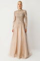Royal Class Taş İşlemeli Gold Tesettür Abiye