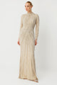 Tül Üzeri Zigzag İşlemeli Bej Tesettür Abiye Elbise