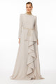 Hijab Evening Dress with Ruffle Skirt Detail, Stone Embroidered Collar and Front