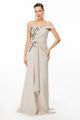Embroidered Evening Dress with Slit Skirt and Gathered Waist – Crepe Fabric