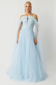 Load image into Gallery viewer, Cape Flowing Strapless Couture Blue Evening Dress
