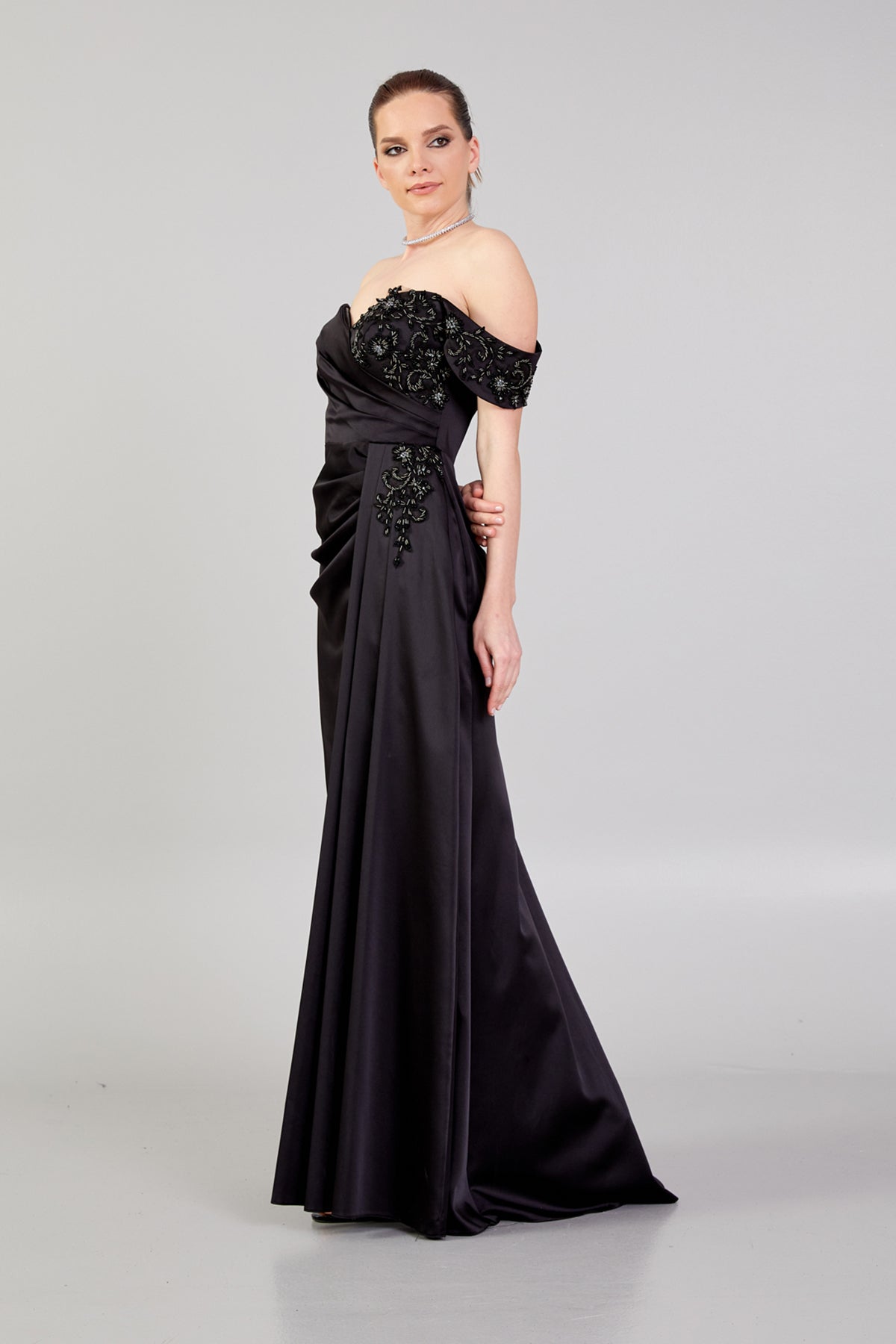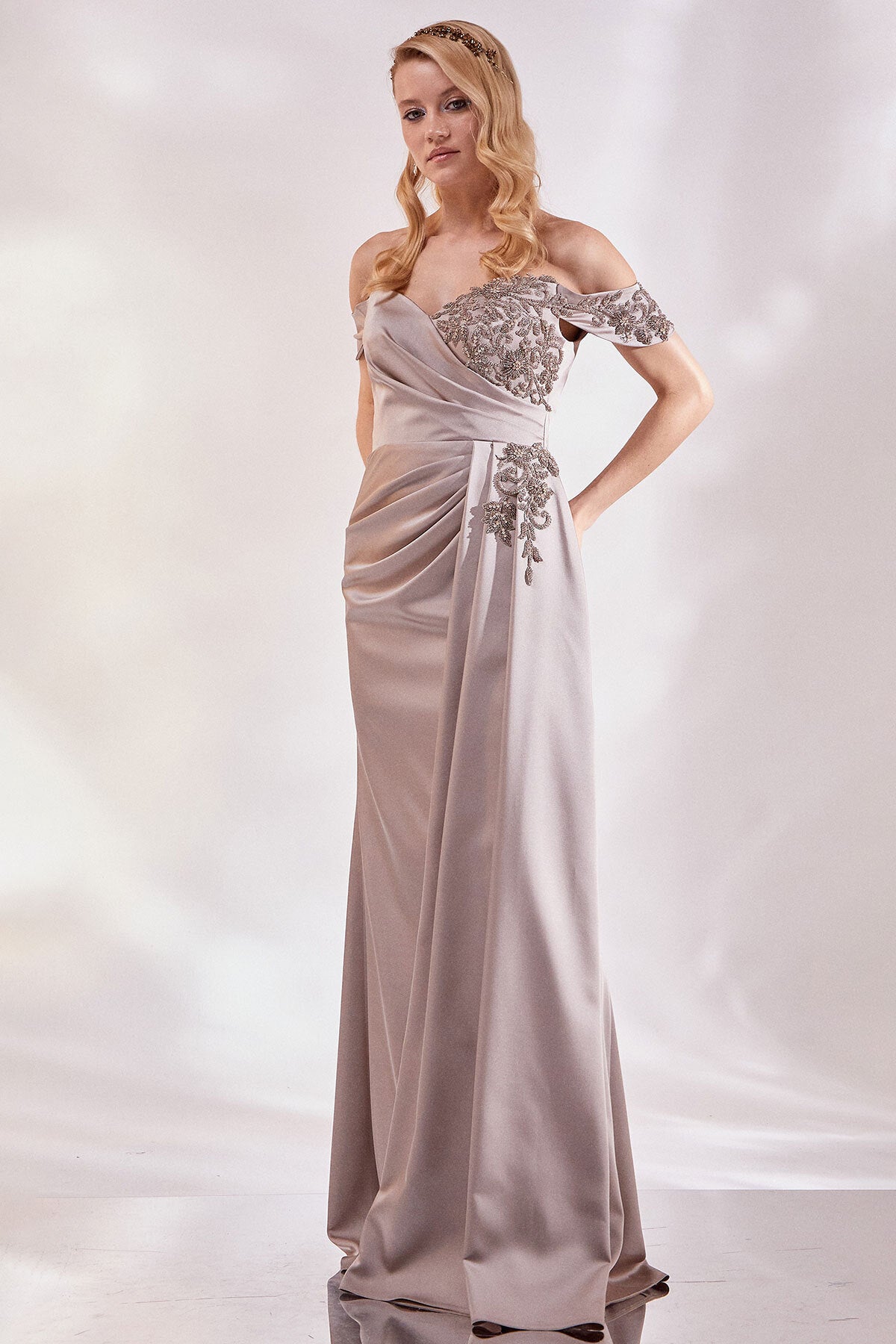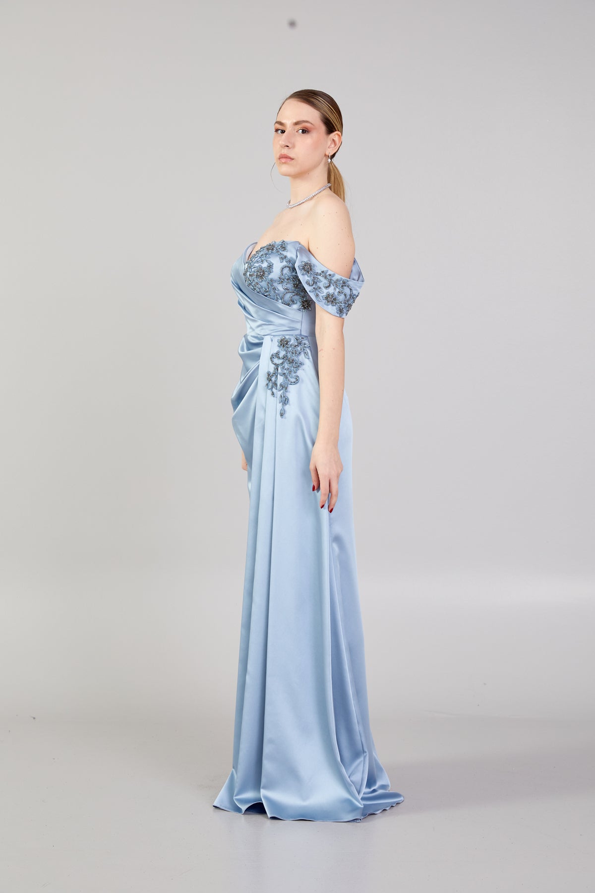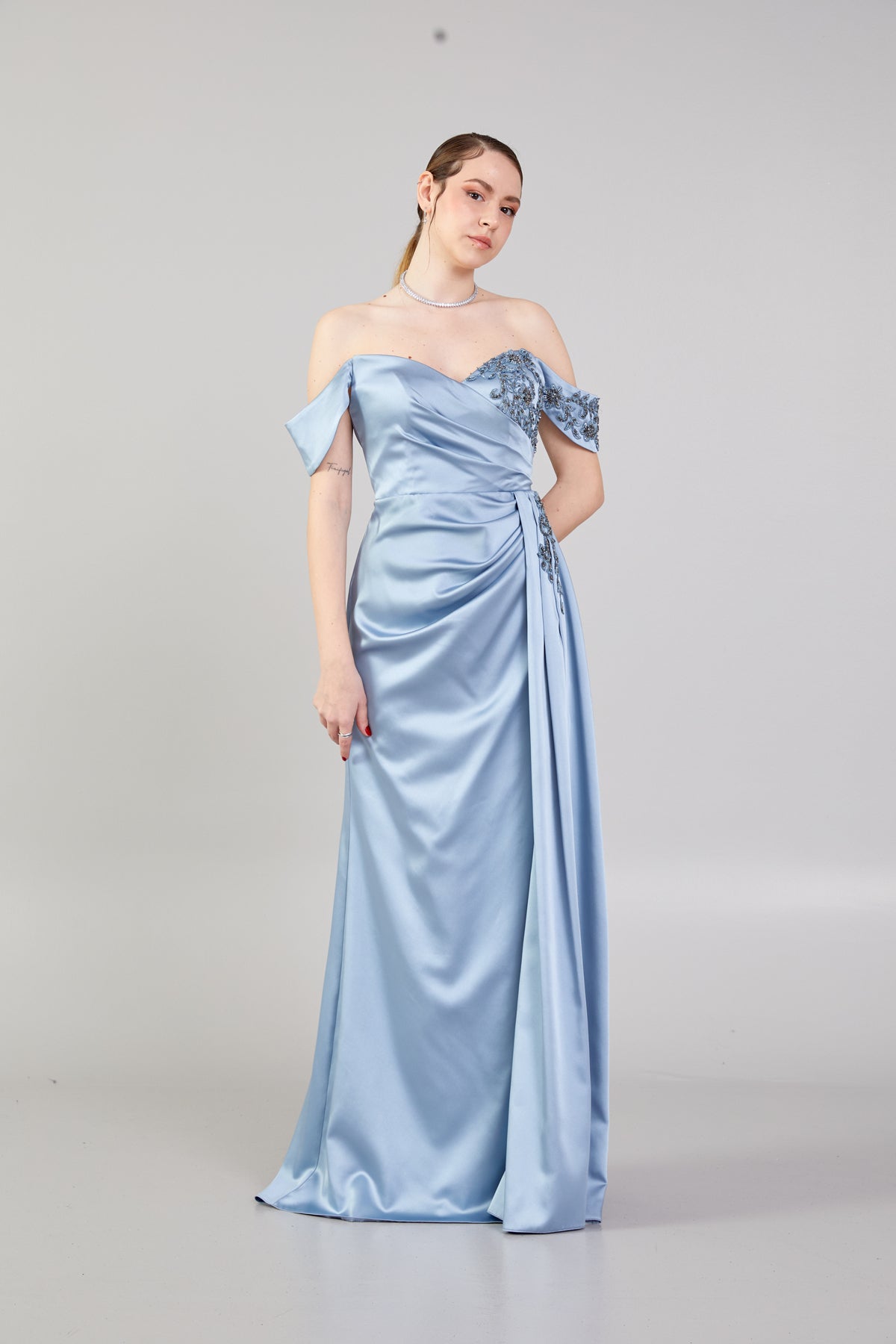 Bel Büzgü Detaylı Göğüs İşlemeli Abiye