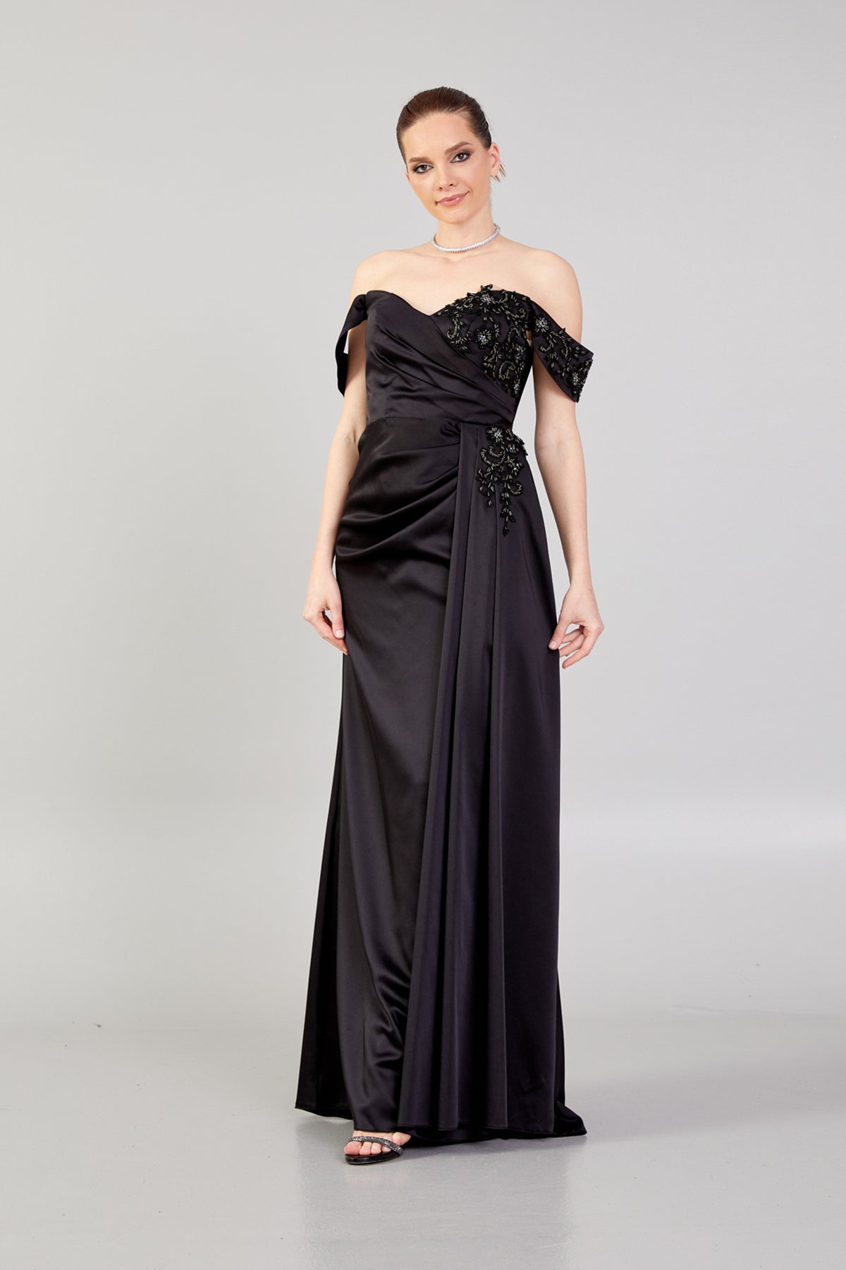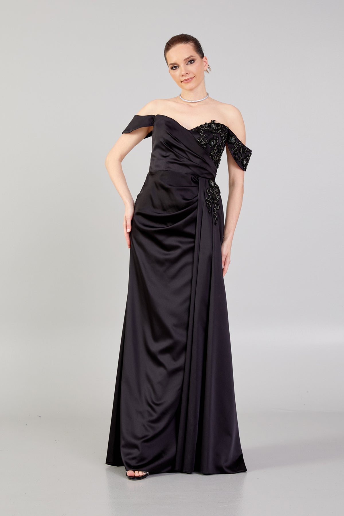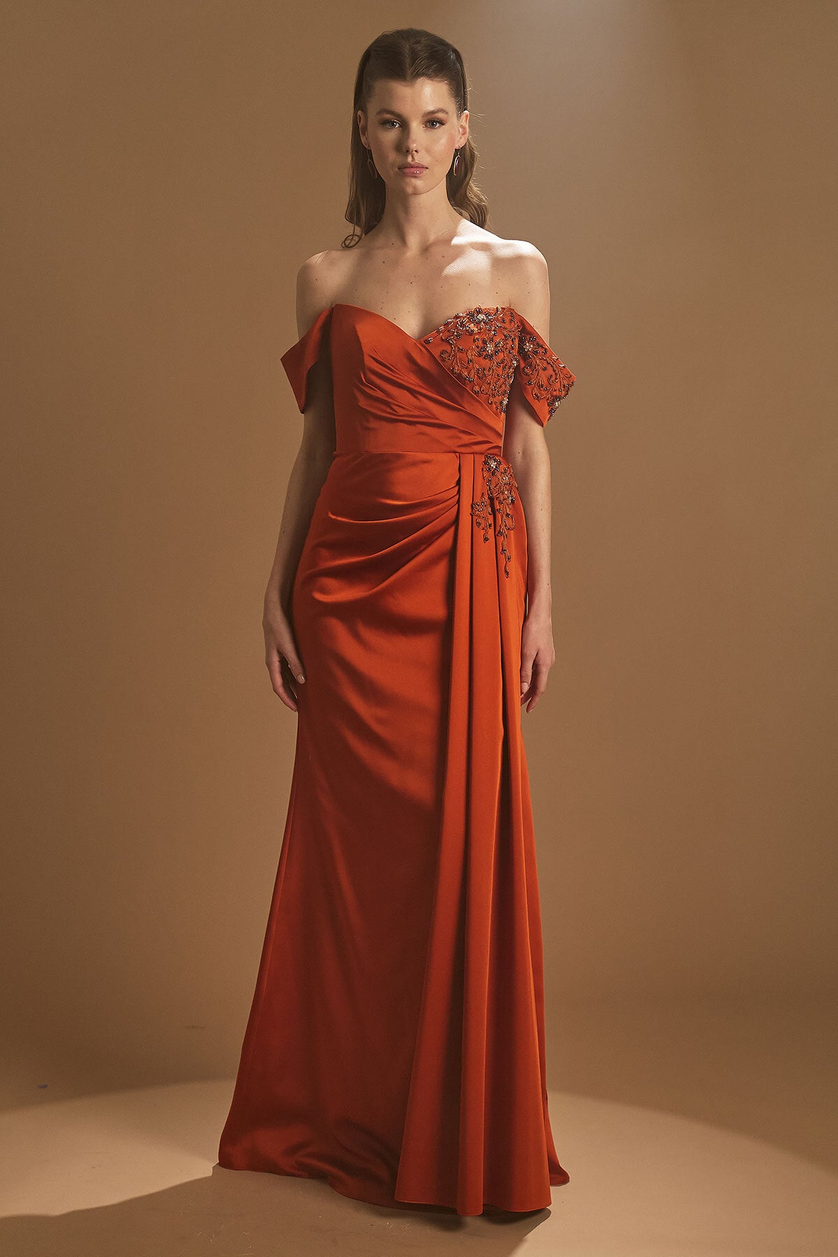 Bel Büzgü Detaylı Göğüs İşlemeli Abiye