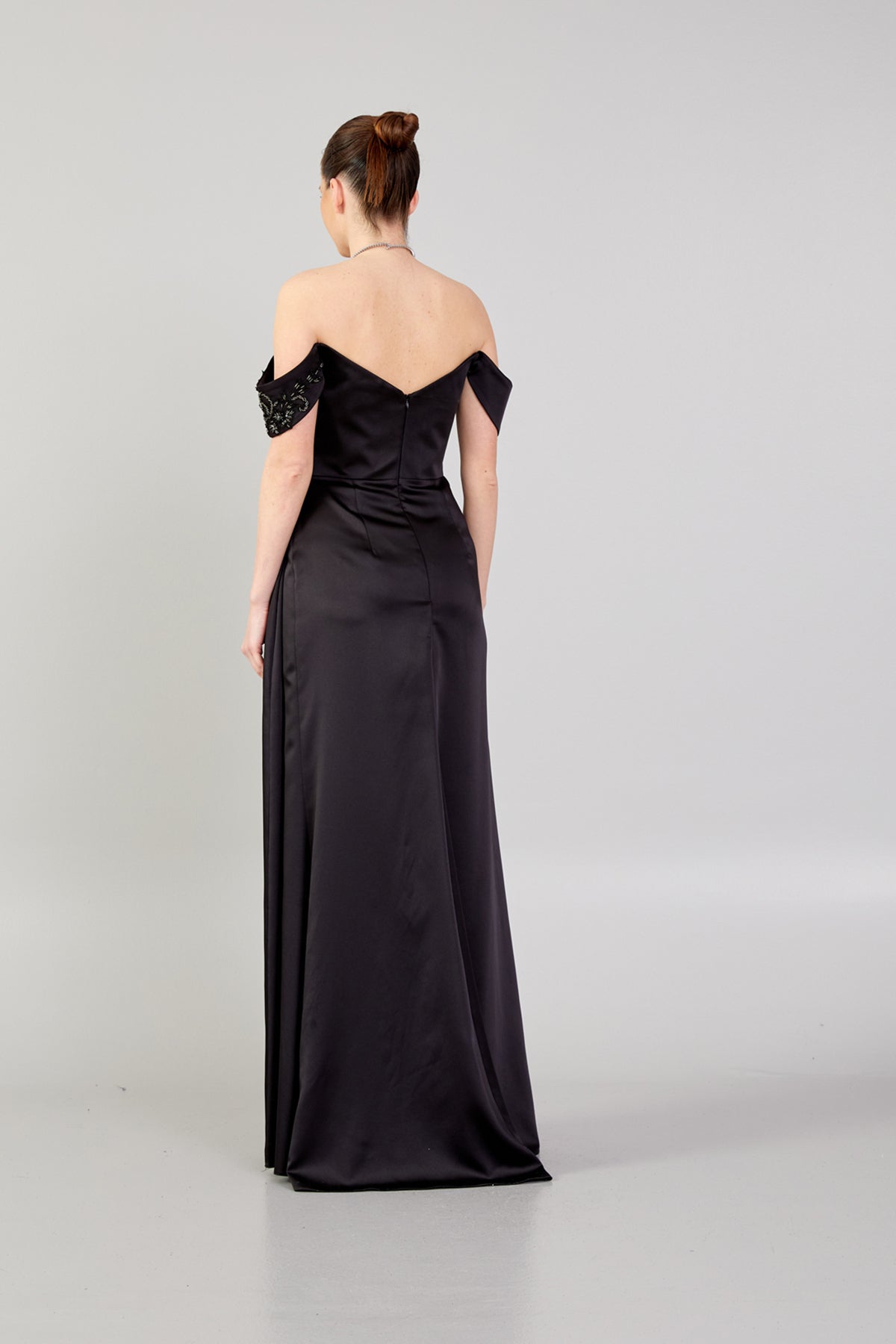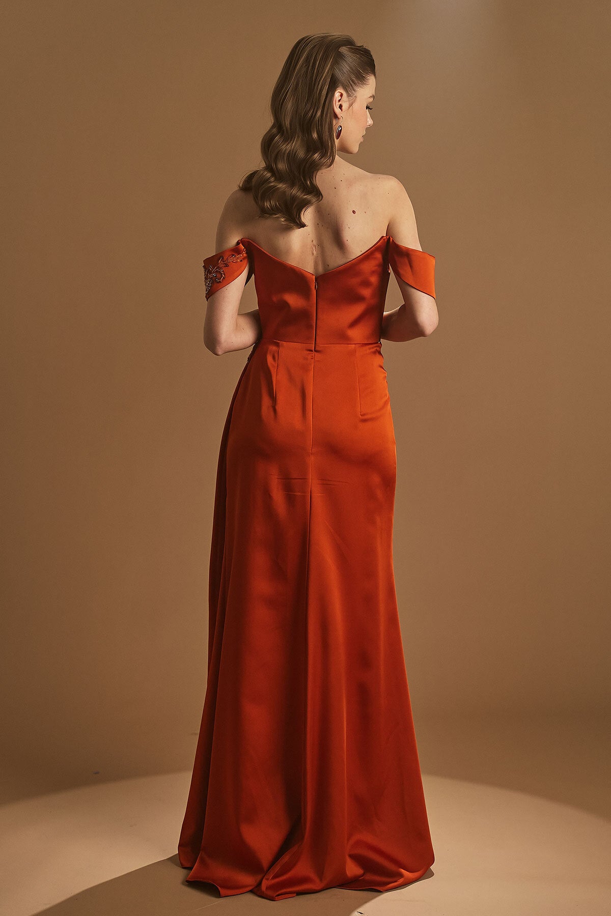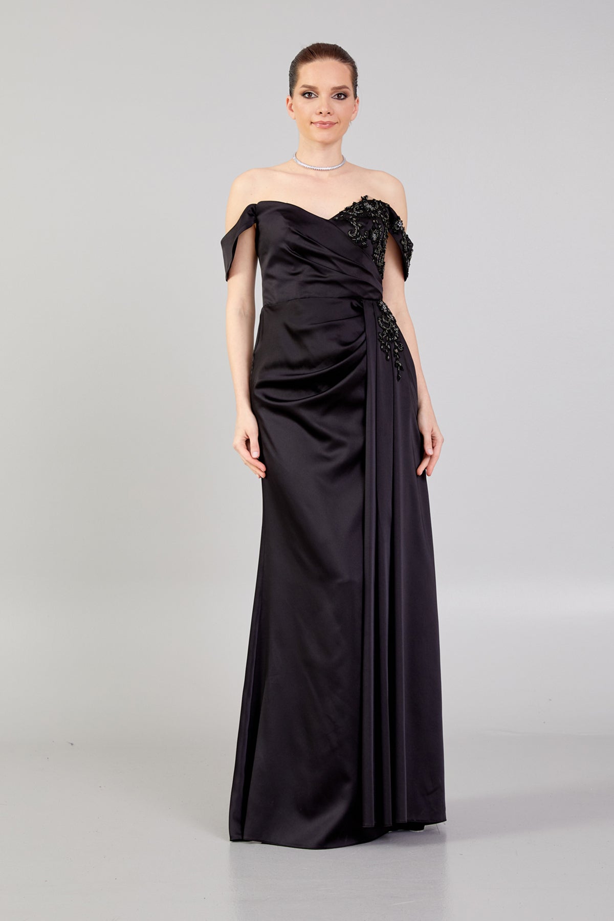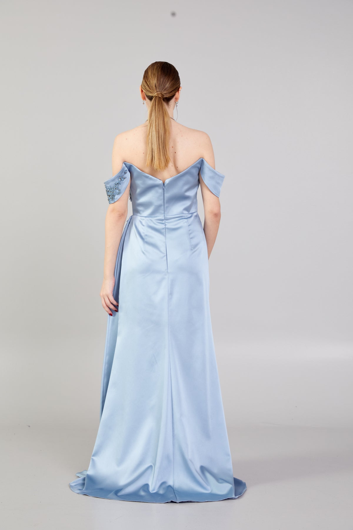 Bel Büzgü Detaylı Göğüs İşlemeli Abiye